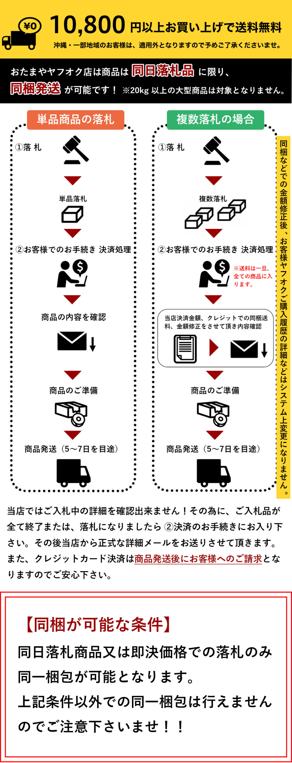 ・「代金引換」ならびに「配送日時指定」はご利用いただけませんので、ご注文内容確認後修正させていただく場合がございます。